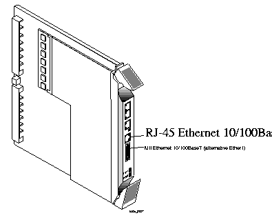 4. Connect the cable to the RJ-45 or MII Ethernet 10/100BaseT interface (see Figure 1-11).
